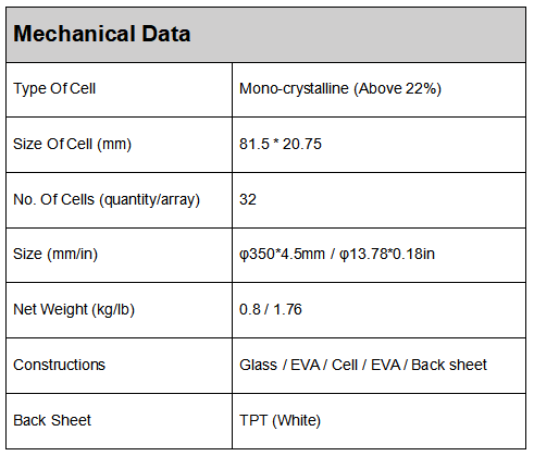 Irradiance 1000W/m², Module temperature 25°C, AM=1.5