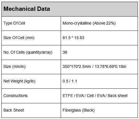 Irradiance 1000W/m², Module temperature 25°C, AM=1.5